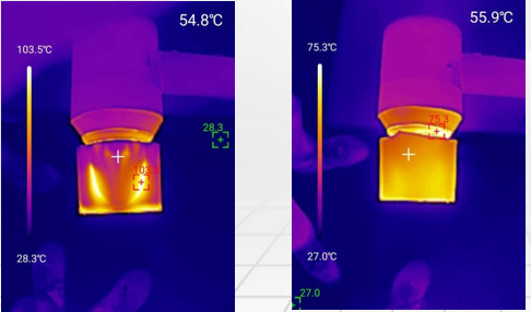 为了解决这一问题,研究人员尝试在电吹风的风嘴部位贴附NIRC散热膜。经过测试,发现贴膜前电吹风在最高功率档下运行10分钟后,风嘴最高温度可达到103.5摄氏度。而在贴上NIRC散热膜后,同样条件下风嘴的最高温度仅为75.3摄  氏度,温度下降了28.2摄氏度,降幅达到27.24%。